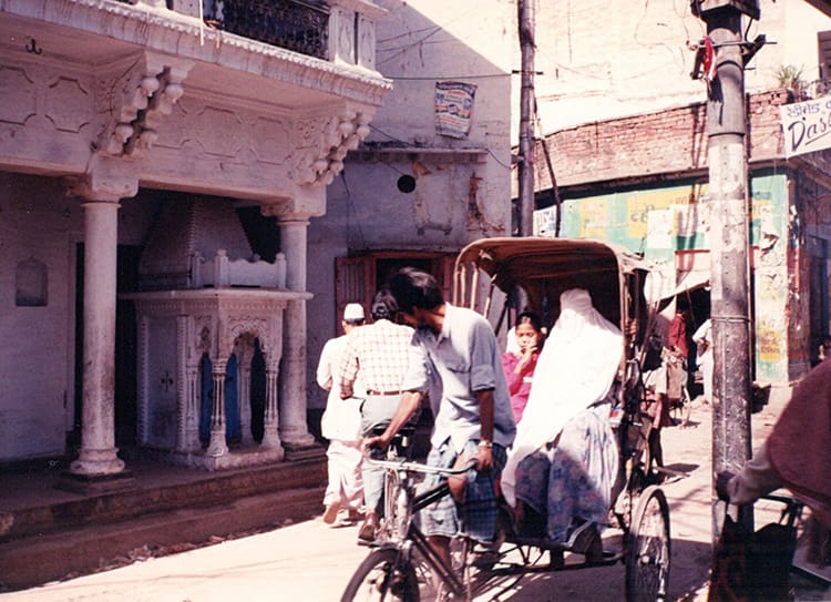 ↑1993年、観光ガイドを持たずにヒンドゥー教の聖地ベナレスを逍遥していたら、思いがけずイスラム教徒(ムスリム)ばかりが住むエリアに迷い込みました。